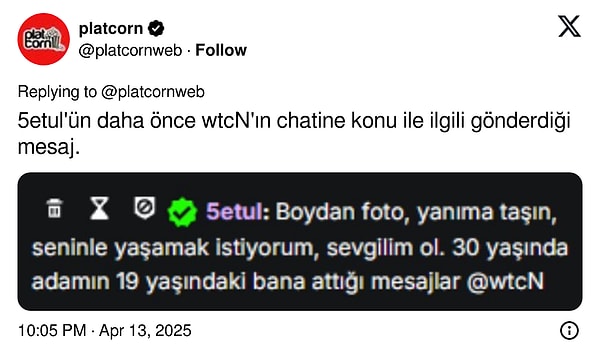 X’te platcorn isimli bir hesap da Betül’ün iletilerini paylaştı.