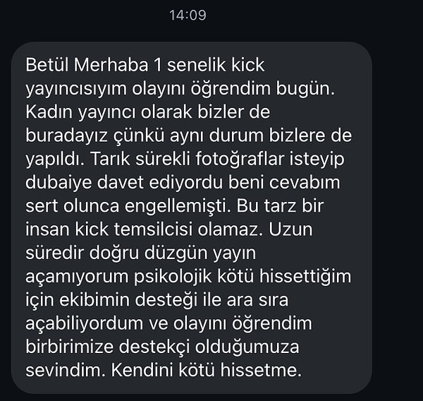 Bu kişi, Betül isimli yayıncıya Instagram yoluyla ulaşarak durumu anlattı.