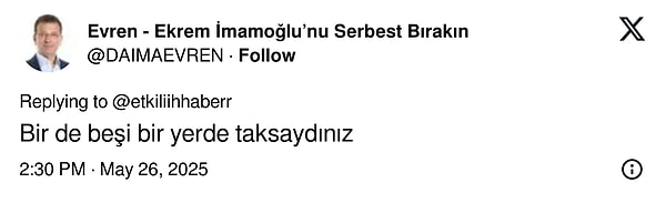 ‘Esila kalp ve böbrek hastası olmasına karşın CB’ye hakaretten 36 gün tutuklu kaldı. Zehra Kınık ise trafikte 17 yaşında genci öldürdü, asli kusurlu bulundu. Yalnızca 4 yıl 2 ay mahpus cezası verildi, hiç mahpusa girmeyecek… Ehliyetine de anca bugün 2 yıllığına el konuldu.’