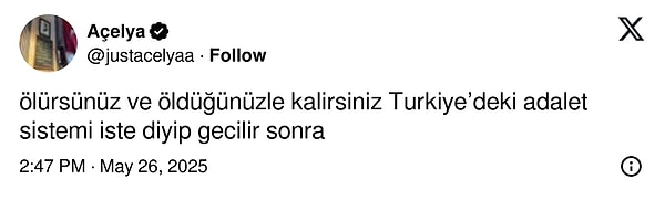 ‘Ölürsünüz ve öldüğünüzle kalırsınız Turkiye’deki adalet sistemi iste diyip gecilir sonra.‘