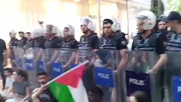 Ankara’da hareketli anlar yaşandı. İsrail’in, Filistinlilere yönelik akınlarına dikkat çekmek isteyen “Filistin’de İşgale Son Platformu” ve kimi sivil toplum örgütleri, Yüksel Caddesi’nde protesto hareketi düzenledi. Polis ile aksiyoncular karşı karşıya geldi. Kimi aksiyoncular gözaltına alındı.