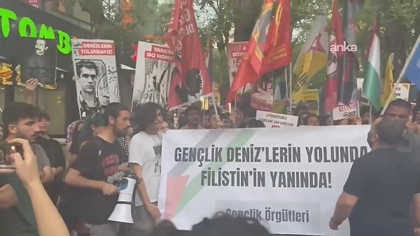 “Filistin’de İşgale Son Platformu” ve kimi sivil toplum örgütleri, Yüksel Caddesi’nde protesto aksiyonu düzenledi. Harekette, Filistin’e insani yardım taşıyan “Madleen” gemisine özgürlük daveti yapılırken, İsrail’e silah ve dayanak taşıdığı belirtilen “Vela” gemisine ise ambargo talep edildi.
