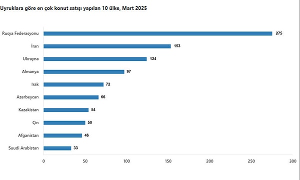 Yabancılara konut satışında birinci sırayı Rusya aldı.