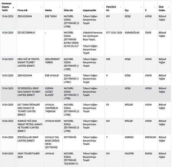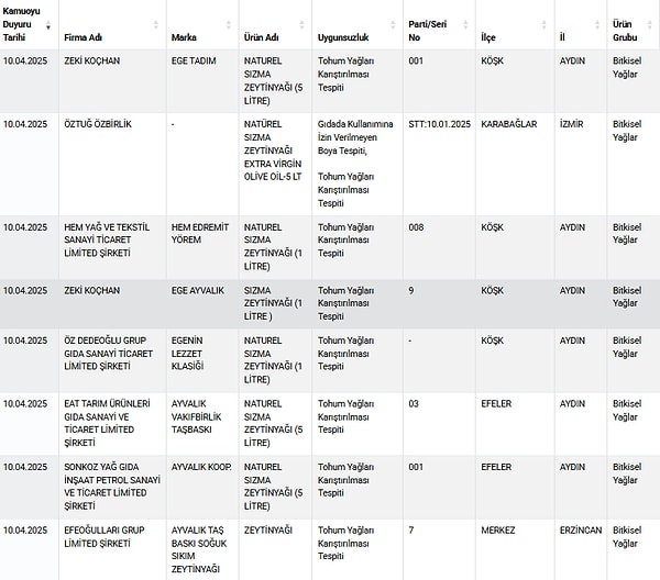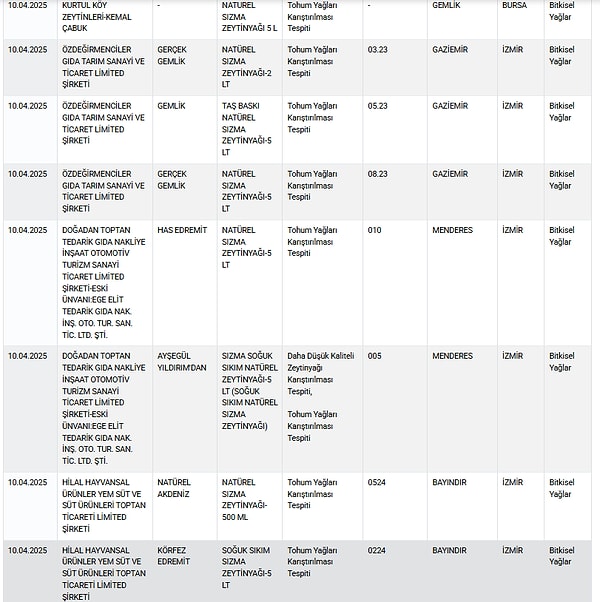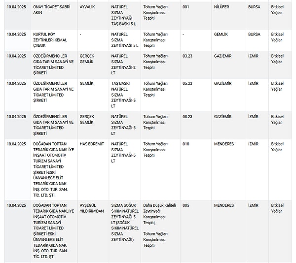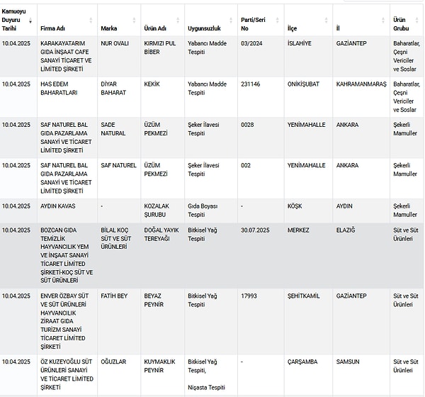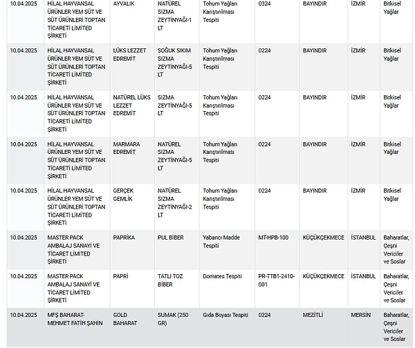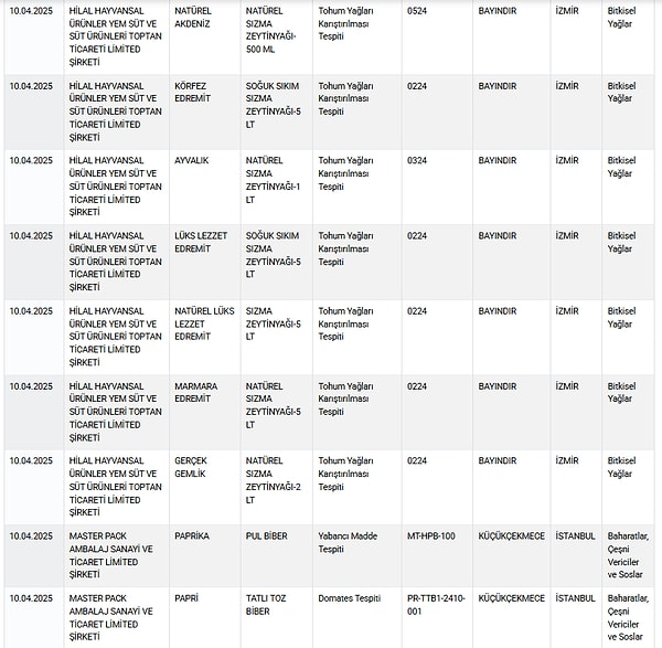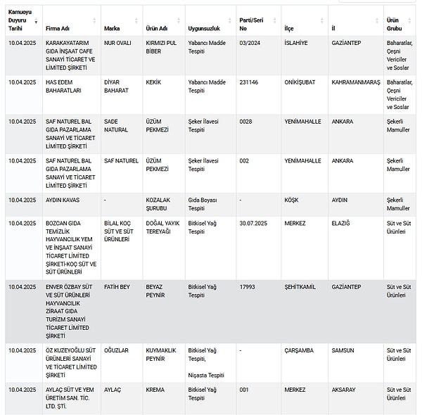 Tarım ve Orman Bakanlığı, gıda güvenliği denetimlerinde ortaya çıkan taklit ve tağşiş eserlerle ilgili listesini güncellemeye devam ediyor.