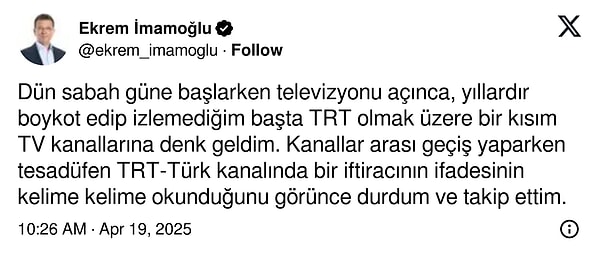 Ekrem İmamoğlu, cezaevinde karşılaştığı bir durumu anlatarak TRT’nin boykot edilmesi için davet yaptı: