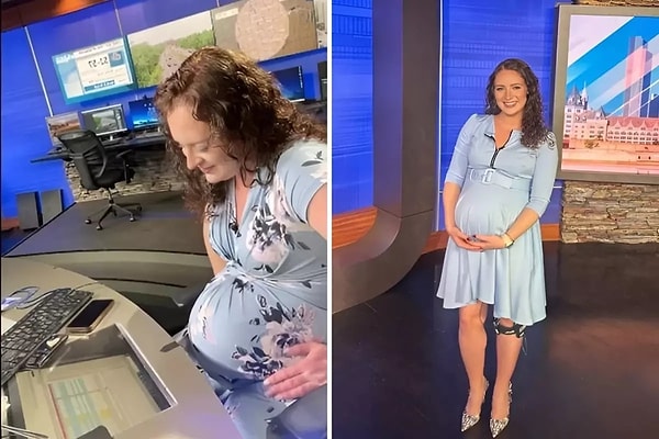 Haber spikeri Olivia Jaquith, doğum sancıları başlamasına karşın yayına devam etti.