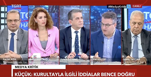CHP’de süren kurultay tartışmalarında her gün yeni bir argüman ortaya atılıyor. CHP’nin 20 Kasım 2023’te gerçekleştirdiği, Kemal Kılıçdaroğlu yerine yeni genel lider olarak Özgür Özel’in seçildiği 38. Olağan Kurultayı’na yönelik tartışmalar ve argümanlar sürüyor. Kemal Kılıçdaroğlu dönerse ne olacak? Gazeteci Cem Küçük ve Fatih Atik, TGRT Haber’de yayınlanan Medya Kritik programında CHP senaryosunu açıkladı.