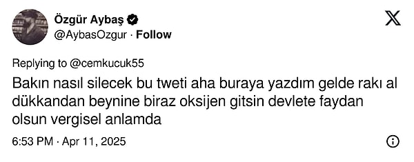 Türkiye Tekel Bayileri Platform Başkanı Özgür Aybaş, X hesabından şu paylaşımı yaptı: