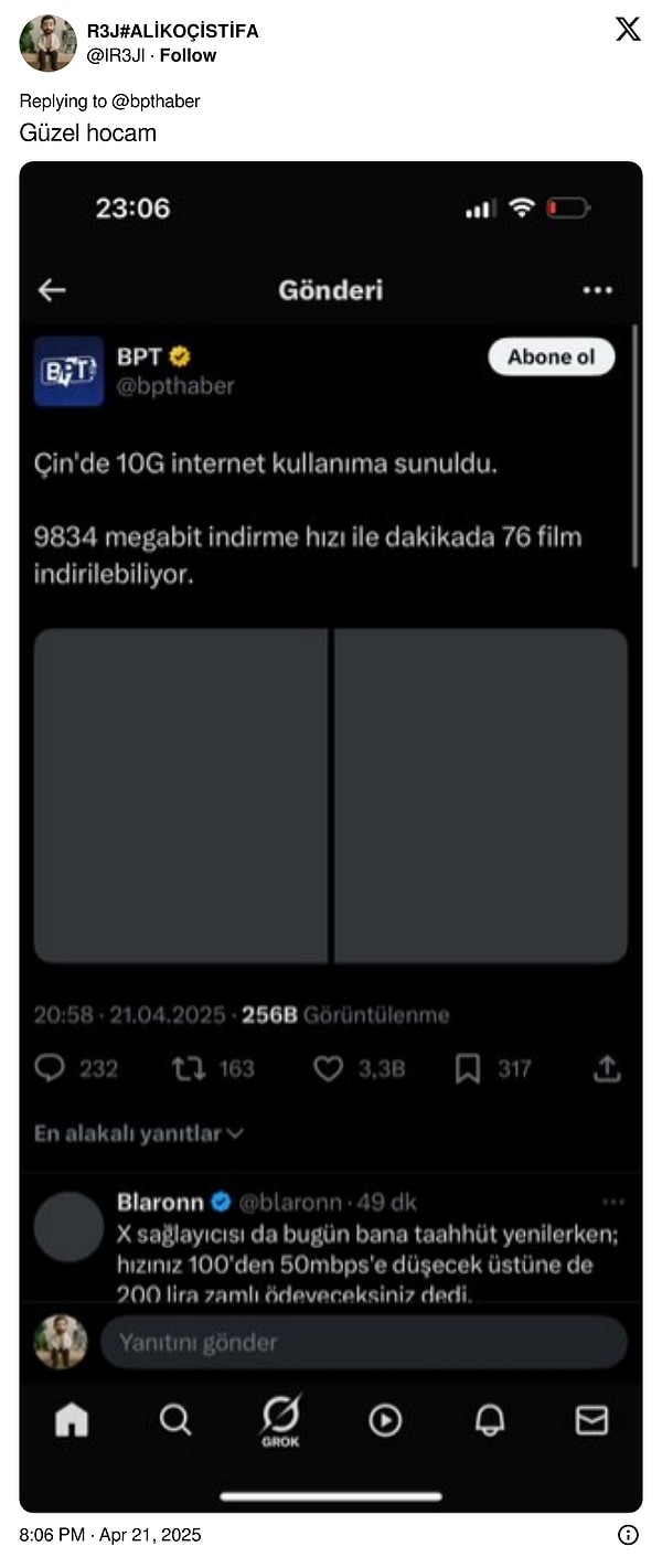 Dünya 5G’yi tartışırken Türkiye’de internet suratı, gerek fiyatları gerek sunduğu süratle tüketicinin en çok şikayet ettiği bahislerden. Bu durum datalara de yansımış durumda. Hatta sabit internet indirme suratında 42,90 Mbps ortalamasıyla 106’ncı, taşınabilir internet indirme suratında 46,37 Mbps ortalamasıyla 58’inci sırada. Bu da ülkemizi Afrika ülkeleriyle misal bir hizmet düzeyine çekiyor. Hal böyleyken Çin’de 10G internete geçilmesi ülkemizde ironik yansıları beraberinde getirdi.