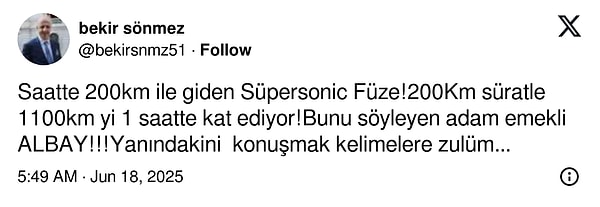 Coşkun saatte 200 km süratle giden füzenin 1100 kilometrelik maksada yaklaşık bir saatte ulaşabileceğini tez etti.