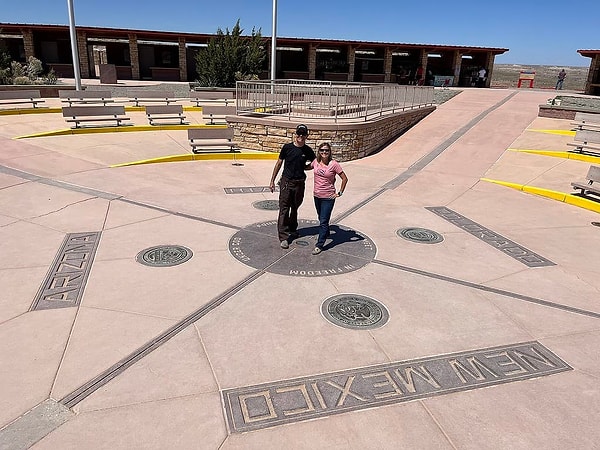 Arizona, Utah, Colorado ve New Mexico eyaletlerinin birleştiği bir nokta var. Hatta bu nokta belirlenmiş ve turistlerin de ilgisini çeken bir yer olmuş. Yani bu noktaya geldiğinde bir ayağın New Mexio’da, başkası Arizona’da olabiliyor. Resmen tek noktada 4 eyalet gezmiş üzere oluyorsun diyebiliriz.