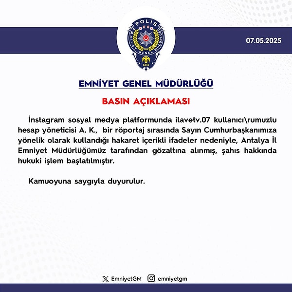 Emniyet Genel Müdürlüğü’nün açıklaması