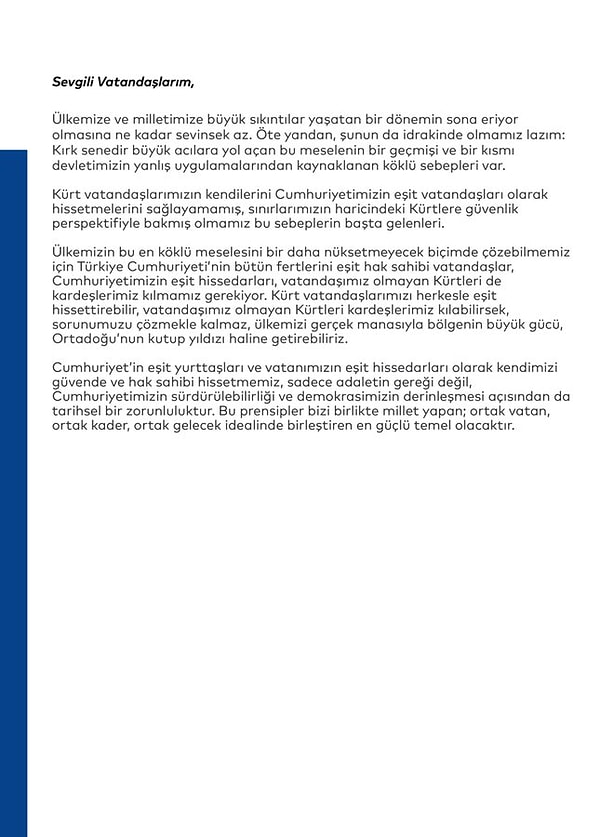 “Ülkem ismine çok sevindim” diyen Ekrem İmamoğlu, “Artık diyaloğun, siyasetin ve işe koyulmanın vaktidir. O makûs günlere geri dönmemek için hem içeride hem dışarıda yapmamız gerekenler vardır.” sözlerini kullandı.