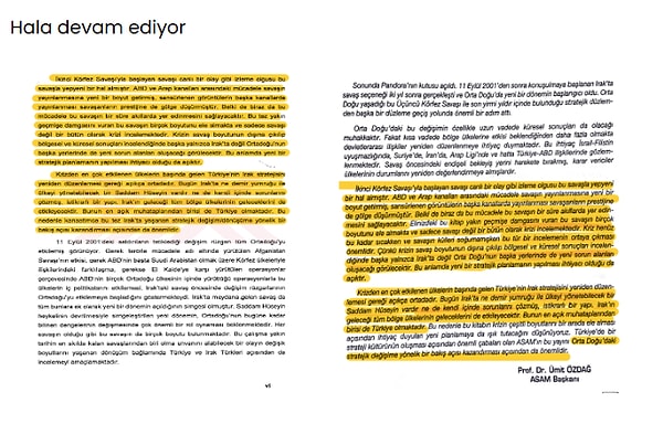 Özellikle Ümit Özdağ, Sedat Laçiner ve Serhat Erkmen’in birlikte yazdığı Irak Krizi (2002-2003) adlı kitaptan alınan kısımlar dikkat çekiyor. Hatta Oğur, kitabın arka kapağındaki tanıtım metninin bile tezde kullanıldığını öne sürüyor.