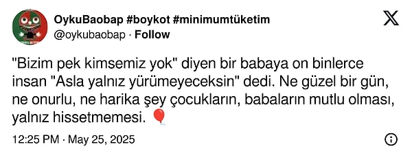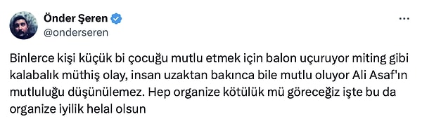 Akabinde “Bizim fazla etrafımız yok” diye başlayan paylaşım, vatandaşları Ali Asıf bebek için balon uçurmaya çağırıyordu. Herkesi duygulandıran bu paylaşıma ailenin yaşadığı Sancaktepe Belediyesi de reaksiyonsuz kalmadı.