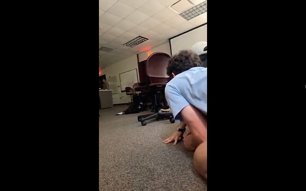 Saldırı sırasında bir öğrenci o anları kaydetti. Saldırgan sınıf kapılarını yumruklarken öğrencilerin yere çöktükleri, öğretmenlerinin ise sakinliğini müdafaaya çalıştığı görüldü.