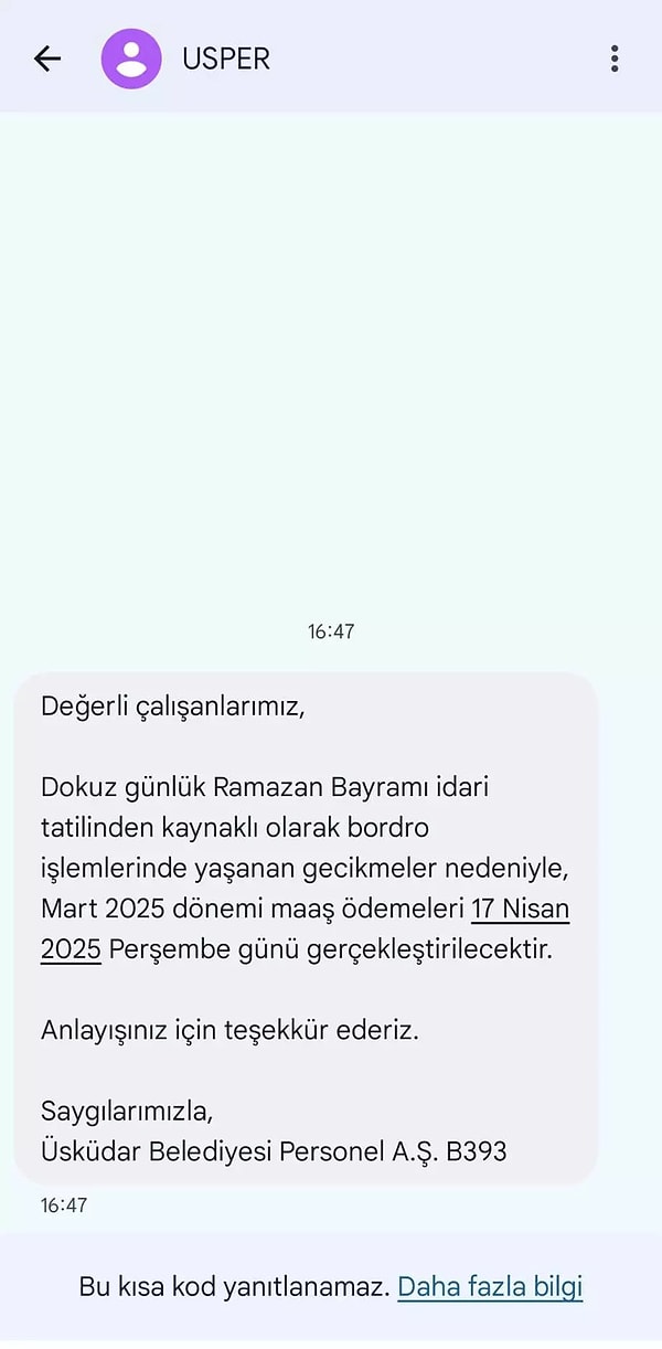 Sosyal medyada paylaşılan bir gönderide, CHP’li Üsküdar Belediyesi’nin maaş ödemelerinde gecikme olacağını duyurduğu yer almıştı.