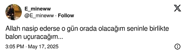 X’te pek çok haber sayfası Ali Asaf’ın bu isteğini duyururken yüzlerce insan 25 Mayıs günü balon uçurmak için geleceklerini yazdı.
