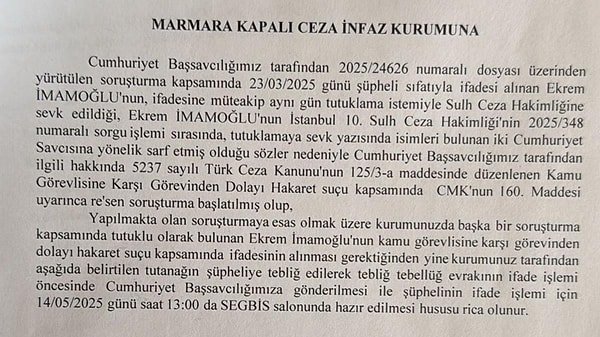 Ekrem İmamoğlu soruşturmada 14 Mayıs günü söz verecek.