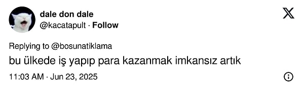Sosyal medyada gündem olan yazıya pek çok yorum geldi. X kullanıcıları ekonomik krize ve esnafın haline isyan etti.