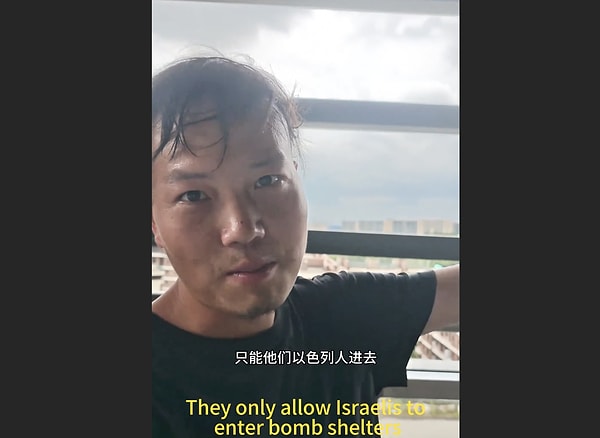 İsrail’de çalışan bir Çinli de savaşın görünmeyen yüzünü anlattı. Diğer ülke vatandaşlarının sığınakları kullanmasına müsaade verilmediğini söyleyen adam yaşananları bir görüntü ile paylaştı.
