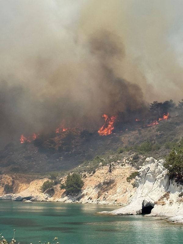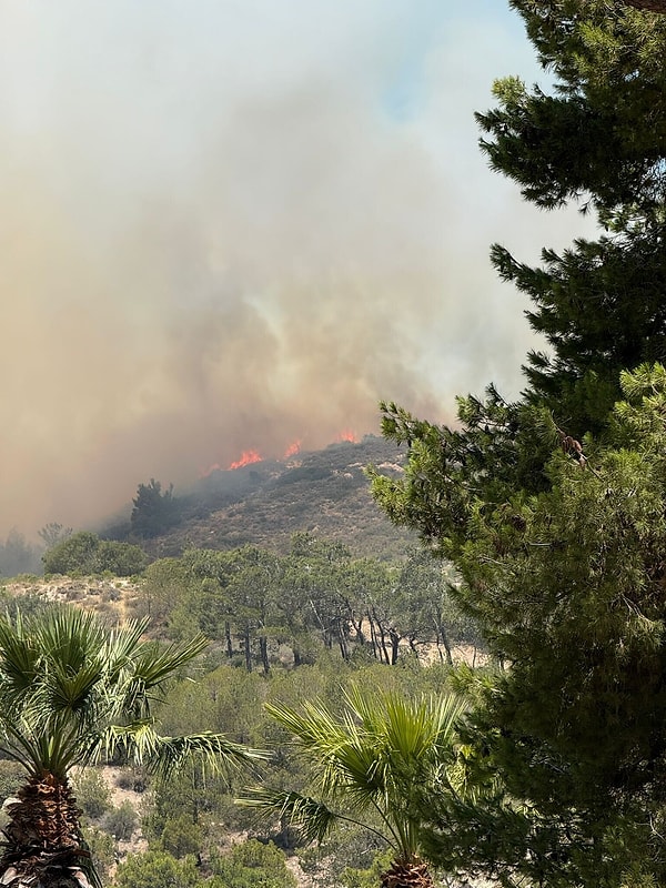 Rüzgarın tesiriyle büyüyen alevlere İzmir Orman Bölge Müdürlüğü, saat 11.52’de 2 uçak ve 6 helikopter ile havadan, 14 arazöz, 4 su ikmal ve 3 dozer ile karadan müdahale etmeye başladı. Takımların yangını denetim altına alma çalışmaları sürüyor.