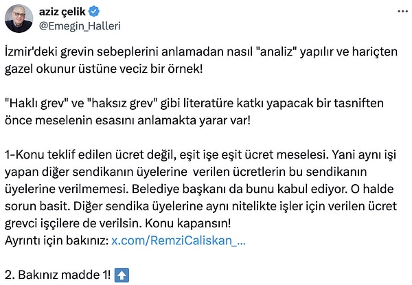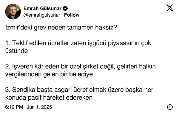 “İşçiler ve sendika greve gitti diye adeta hatalı ilan edilecek. Sakin olun lütfen! Grev haktır.”