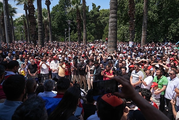 İzmir Büyükşehir Belediyesi’ne bağlı iştiraklerde çalışan emekçiler, 28 Mayıs gecesi greve gitme kararı aldı. Toplu iş görüşmelerinde sonuç çıkmaması üzerine grev kararı alan çalışanlar, İzmir Büyükşehir Belediyesi Hizmet Binası önünde toplanarak ‘İş, ekmek, adalet’, ‘Sadaka değil toplu sözleşme’, ‘Açlıktan ölmeyiz, biz bu yoldan dönmeyiz’ sloganları attı.