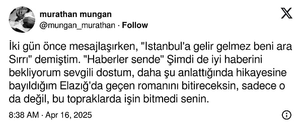 Durumunun kritik olduğu belirtilen Sırrı Süreyya Öncü’ye ünlü dostlarından bildiri gecikmedi.