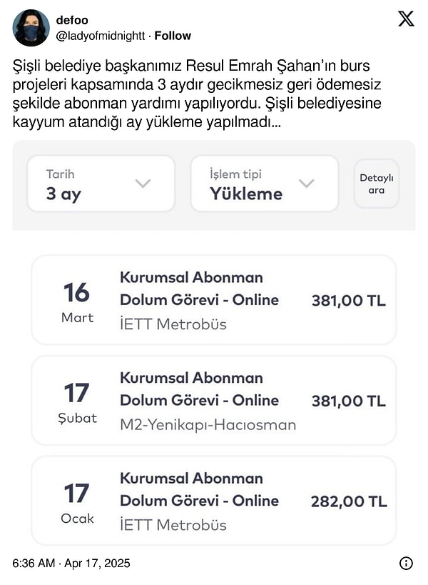Şişli Belediye Başkanı Resul Emrah Şahan 19 Mart sabahı Ekrem İmamoğlu ile birlikte gözaltına alınan isimlerdendi. Daha sonrasında terör ve yolsuzluk kapsamında tutuklanan Şahan’ın yönettiği belediyeye kayyum olarak Cevdet Ertürkmen atandı. Lakin Kent Lokantaları ile başlayan reaksiyonlar öğrenci burslarıyla devam etti. Savlara nazaran Ertürkmen vazifeye başladığından beri Şişli Belediyesi’nin öğrencilere verdiği burs ve ulaşım yardımı sahiplerine ulaşmıyor.