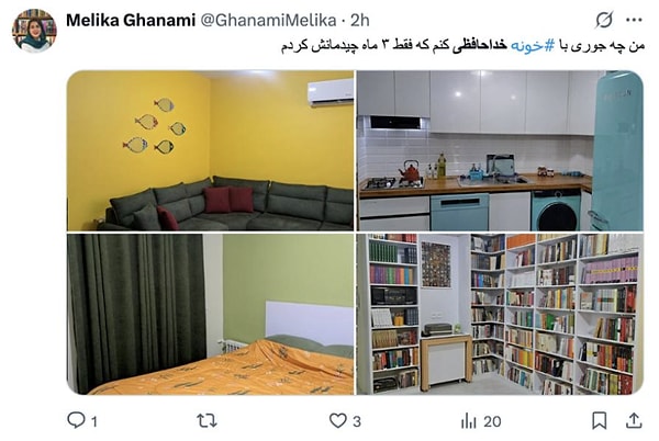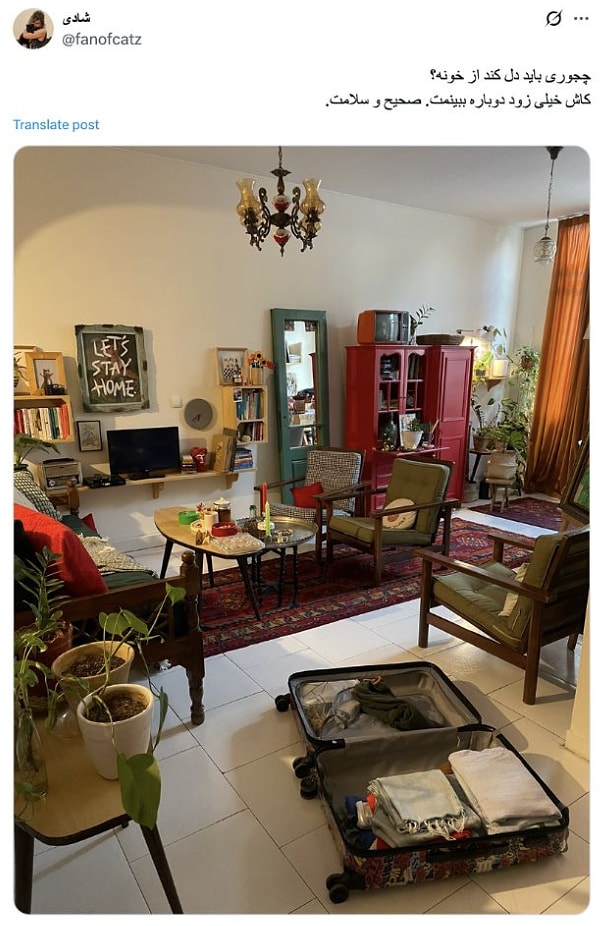 Evlerinden kaçmak zorunda kalan İranlılar, meskenlerinin ‘son fotoğraflarını’ içlerini dökerek paylaşıyor. BBC’nin derlediği bu paylaşımlardan, görmüş olduğunuz fotoğrafa bırakılan açıklama şu biçimde: ‘Evim hiç bu kadar hüzünlü olmamıştı. Geri dönüp dönemeyeceğimi bilmiyorum.’