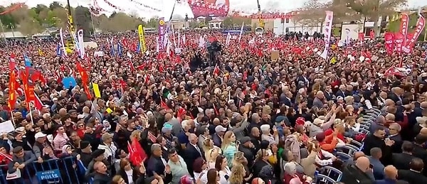 ‘Sesimi, yüreğimi, umudumu bu iletiye sığdırarak sizleri selamlıyorum. 19 Mart’tan bu yana ülkemizin dört bir yanında buluşan bu millet adil, özgür ve müreffeh bir gelecek için ses veriyor. Yurdumun tam ortasında bu kadim kentte basiretli, saygılı, derinlikli Anadolu kültürü bizi bağrına basıyor. Bu bereketli ovanın, bu makul kentin alın terine, sabrına selam olsun. Bugün aranızda değilim lakin azımızı çoğa sayın. Sizi bu meydanda selamlayan her bir arkadaşımı Ekrem İmamoğlu sayın. 19 Mart’tan bu yana ülkemizin dört bir meydanında bulunan millet, adil günler için ses veriyor.