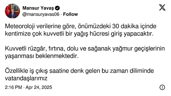 Mansur Yavaş’tan Ankaralılara ikaz.