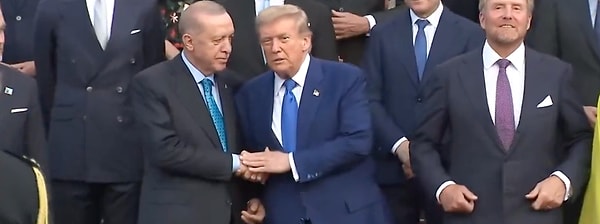 NATO başkanları, Hollanda Hükümdarı Willem-Alexander’in verdiği yemek öncesinde aile fotoğrafı çektirdi. Fotoğrafta Cumhurbaşkanı Recep Tayyip Erdoğan ile ABD Başkanı Donald Trump yan yana poz verdi.