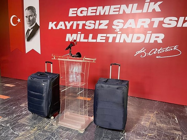 CHP İstanbul İl Başkanı Özgür Çelik, çok konuşulan valizlerle basın toplantısı yaptı.