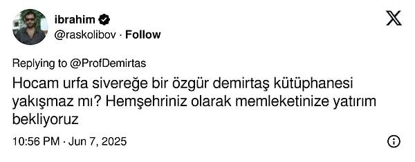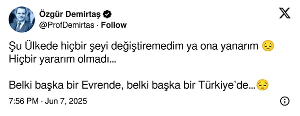 Özgür Demirtaş’ın X hesabından yaptığı paylaşım şöyle oldu 👇🏻