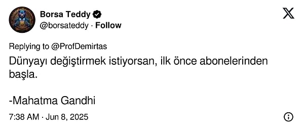 Sosyal medya paylaşımlarıyla dikkat çeken ekonomist Özgür Demirtaş’ın yaptığı son paylaşım dikkat çekti. Ülkede hiçbir şeyi değiştiremeden kaygı yanan Demirtaş’ın paylaşımı X kullanıcılarının lisanına düştü. Kullanıcılar bu paylaşıma mizahlarını eksik etmedi.