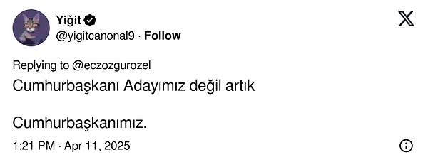 Özel, paylaşımına ‘Yiğidim… Aslanım… Başı dik, alnı ak, Cumhurbaşkanı Adayım…’ notunu düştü.