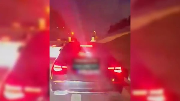 ”Tahsisli araç” diyen şoför, emniyet şeridinde süratle devam etti.