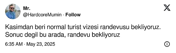 Zam Haber isimli toplumsal medya hesabının paylaşımına nazaran, şirketin sağladığı vize randevularını cins şirketleri toplu olarak alıyor.