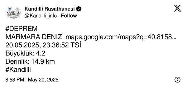 Kandilli Rasathanesi’nin paylaşımı 👇