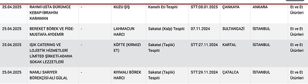 Yapılan son açıklamada İstanbul’da bir işletmenin lahmacunun etinde kalp eti olduğu tespit etti.