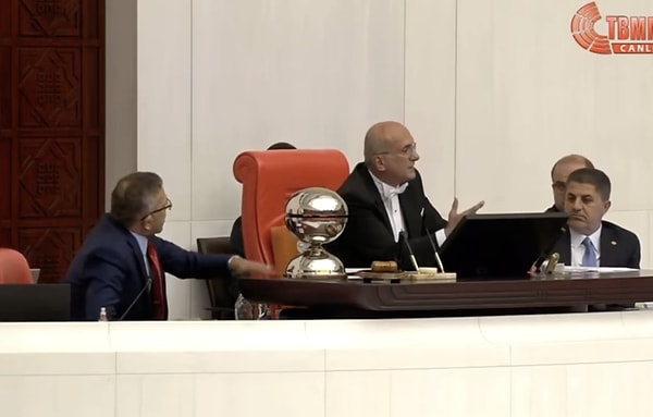 İYİ Parti Denizli Milletvekili ve TBMM Katip Üyesi Yasin Öztürk ise Bingöl’ün masasına vurarak, ‘Siz de tarafsız olun. Olmaz o denli. Ermeni soykırımı diyor, tarafsız ol’ diyerek ayağa kalktı. Tartışmanın tırmanması üzerine oturuma orta verildi.