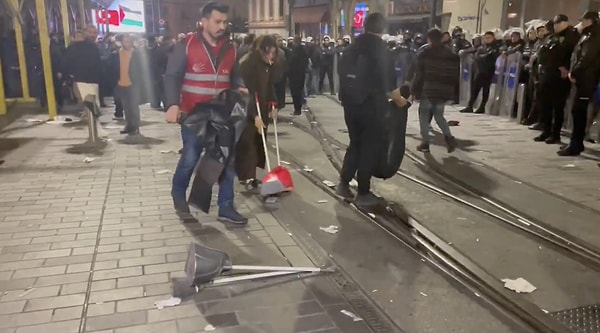 Gençler aksiyonun akabinde gençler sokakları temizlerken görüntülendi.