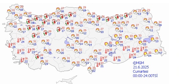 Meteorolojinin raporuna nazaran hafta sonu pek çok vilayette sağanak yağış olacak. 21 Haziran Cumartesi günü Marmara’nın doğusu ile iç kesitlerde; Karadeniz’in batısında sıcaklık ortalama 27 derece olacak. Bu bölgelerde sağanak yağış hakim olacak.