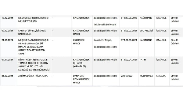 Tarım ve Orman Bakanlığı ünlü börekçiyi de ifşa etti. Taklit yahut Tağşiş Yapılan Gıdalar’ listesinde bulunan Sarıyer Börekçisi’nin kimi şubelerinde kullanılanlar şaşkınlığa neden oldu. Açıklanan ifşa listesinde sakatat ve tek tırnaklı etlerinin kullanılması dikkat çekti.