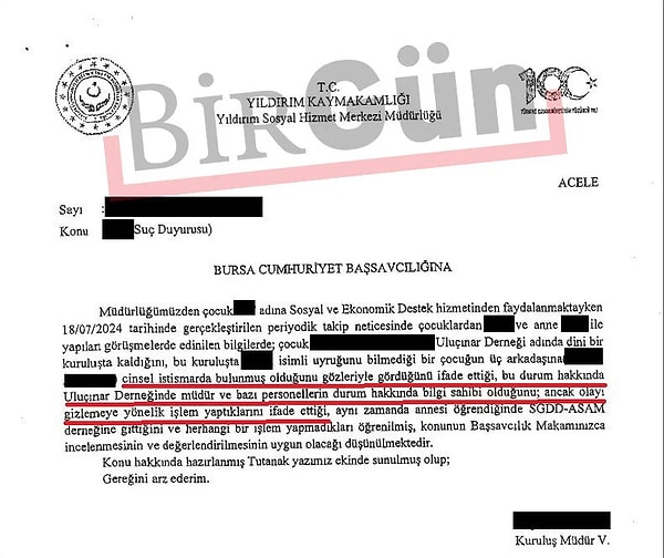 Cemaatin Kuran kursunda kalan bir çocuğun ailesi, Aile Bakanlığı’ndan toplumsal ve ekonomik dayanak aldığı için bakanlık yetkilileri vakit zaman aileyi ziyaret ediyordu. 18 Temmuz 2024’teki ziyarette konutta bulunan çocuk, istismarı bakanlık yetkililerine anlattı. Savcılık ve emniyete bildirilen istismar, soruşturmaya dönüştürüldü.