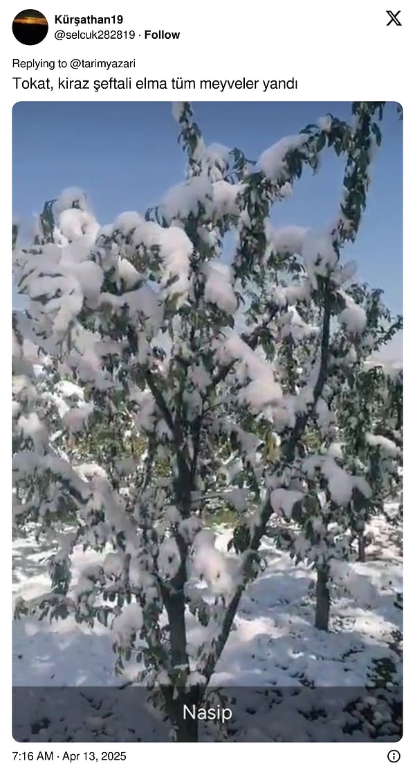 Nisan ayında yaşanan hava sıcaklığı düşüşü ise en çok çiftçiyi vurdu. İktisat Gazetesi Tarım Muharriri Ali Ekber Yıldırım’ın paylaşımına gelen yanıtlar zirai don sebebiyle yaşanan felaketin büyüklüğünü ortaya çıkardı.